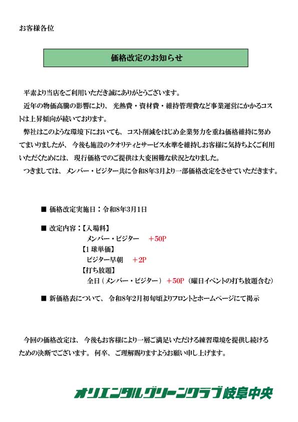 オリエンタルグリーンクラブ岐阜中央 OGCスクール窓口宛